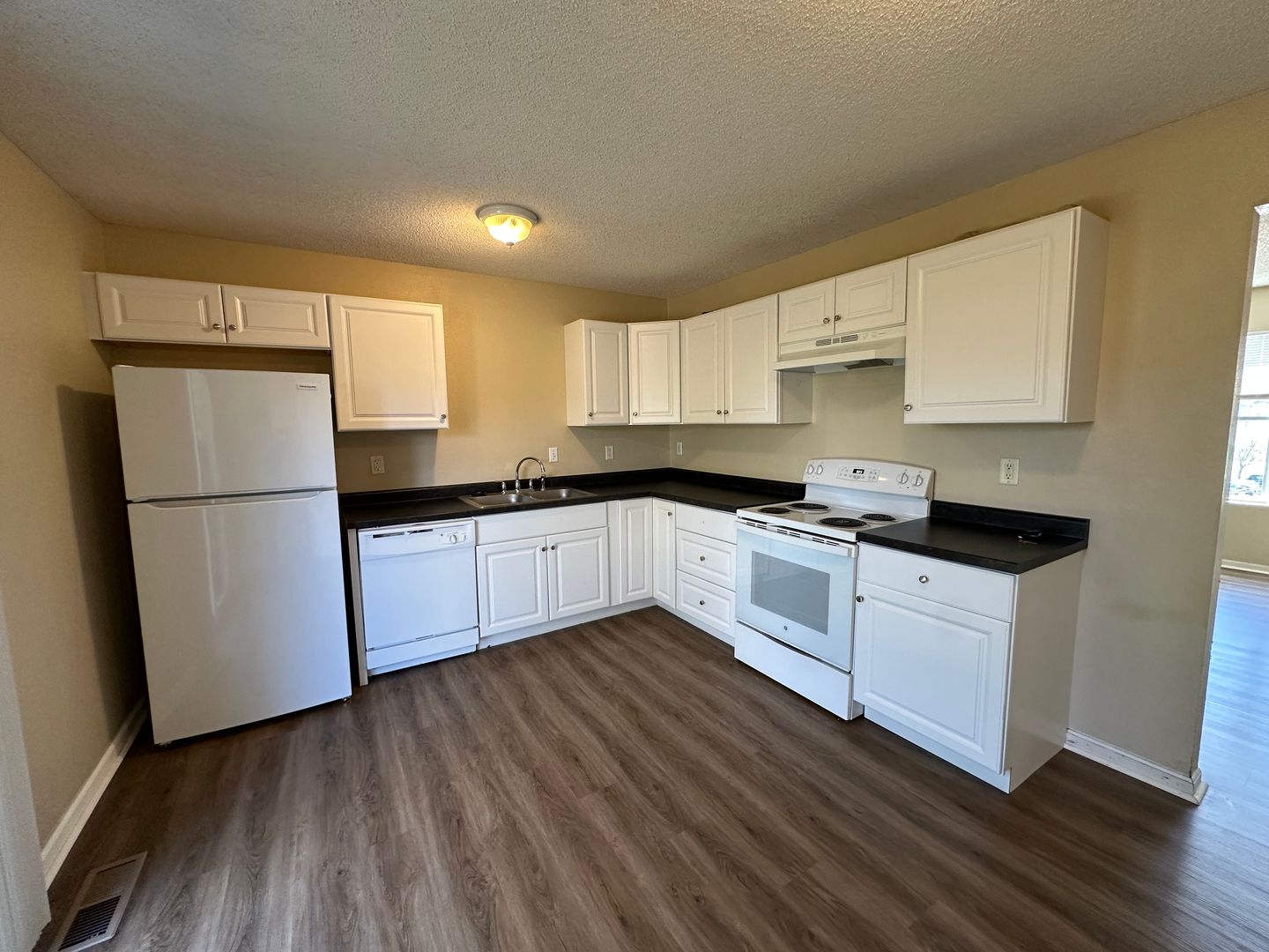 This unit has been recently remodeled. Kitchen is updated, flooring is newer, including vinyl plank in the living room, kitchen, and dining and carpet in the bedrooms.